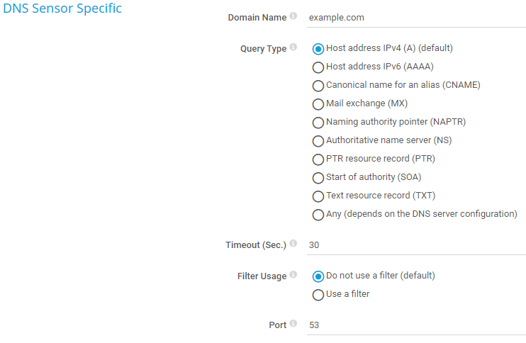 Enter the number of the port to which this sensor connects. This must be the port on which the parent device answers queries. The default port is 53.