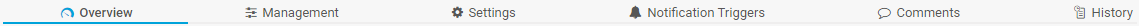 On the History tab, all changes in the settings of an object are logged with a time stamp, the name of the user who made the change, and a message. The history log retains the last 100 entries.