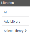 Open a library. Hover over Select Library to show more options. Follow the alphabetical menu path that is specific to your setup to view your libraries. Click a library to open it.