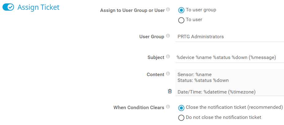 Define a subject that PRTG includes when it sends summarized notifications. The default subject is [%sitename%] %summarycount Summarized Notifications.