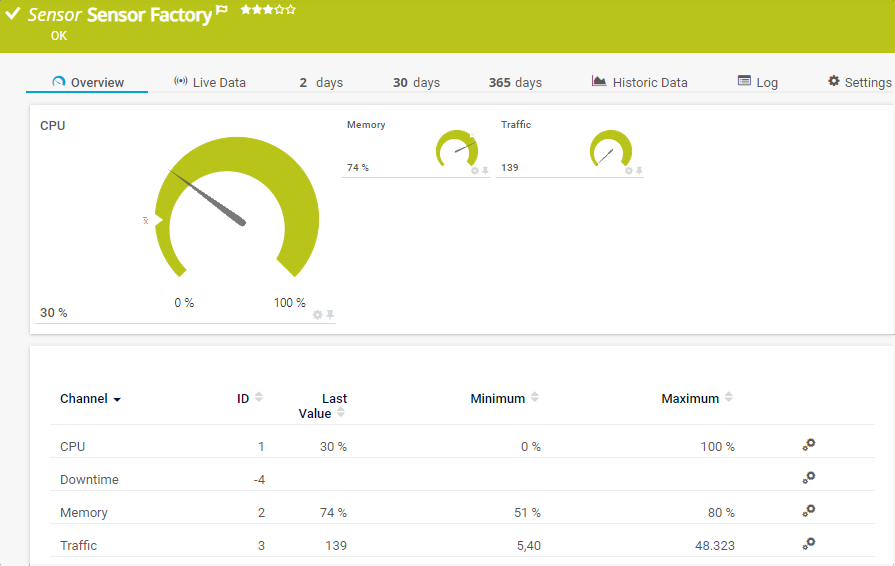 If a sensor in the channel of a Sensor Factory sensor has no data, the Sensor Factory sensor always shows the Warning state, no matter which of the above options you select.