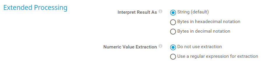Bytes in hexadecimal notation: Handle the result as bytes in hexadecimal notation. For example, select this option if you monitor MAC addresses.